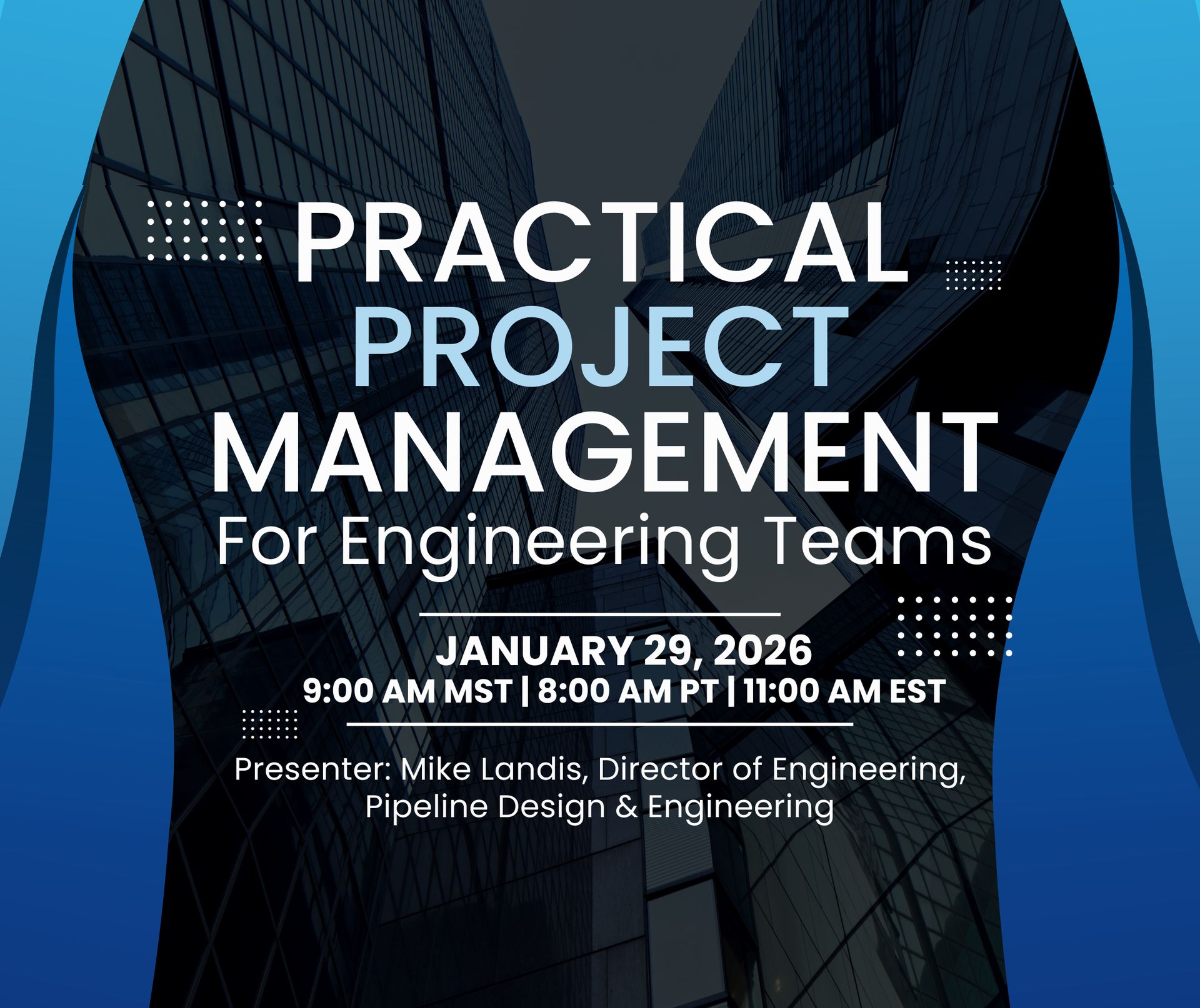 Mike Landis, Director of Engineering at Pipeline Design & Engineering, will share the actual project management framework Pipeline uses every day to manage dozens of concurrent engineering development projects, where budgets are significant, schedules matter, and scope creep can quickly derail outcomes.
